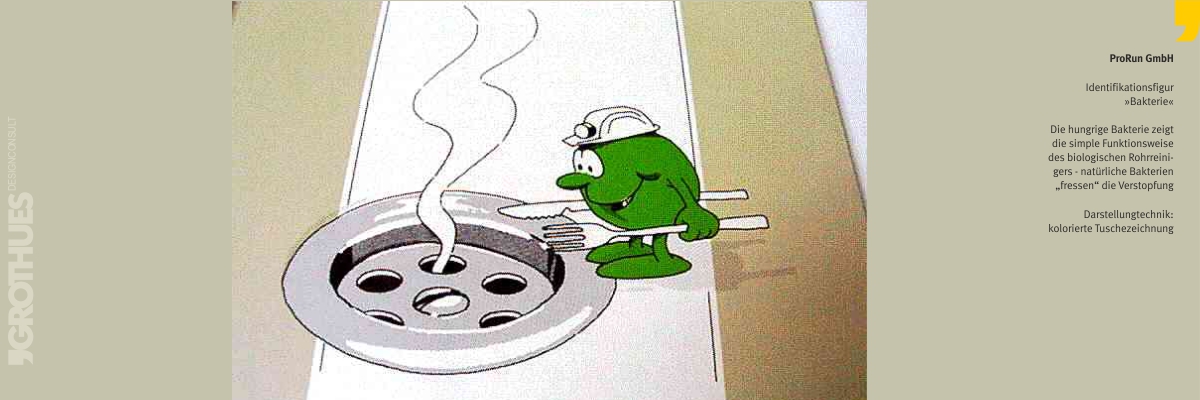 Die grüne »ProRun-Bakterie« zeigt deutlich Ihren Appetit auf Rohrverschmutzungen und steht für eine saubere biologische Lösung dieses Problems.