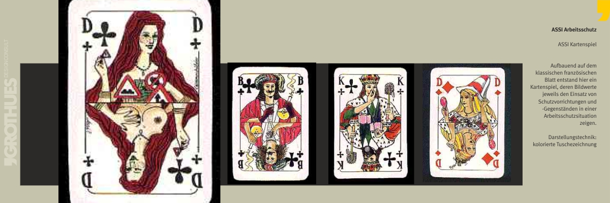 Die Klassiker des französischen Blattes zeigen im Kartenspiel der Firma ASSI Arbeitsschutz auf humoristische Art und Weise die Gefahren des Arbeitslebens und deren Beseitigung.