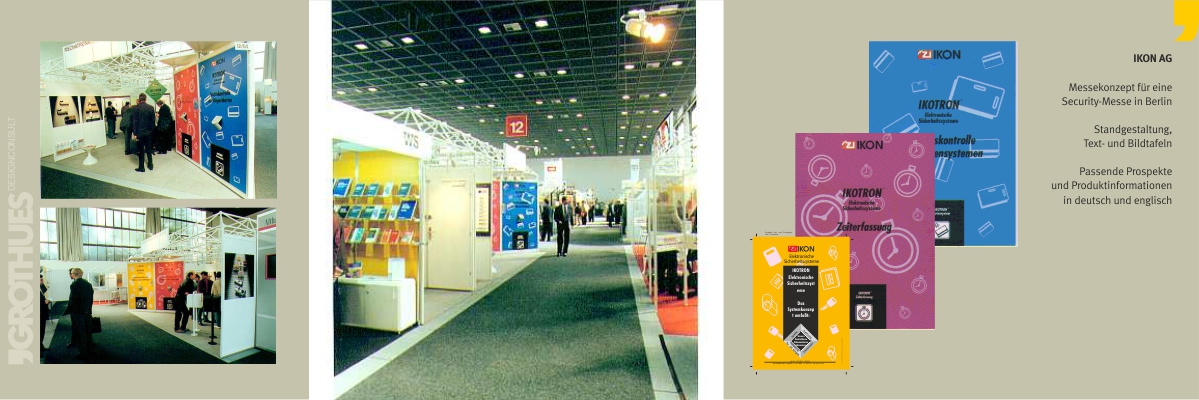 Der IKON-Stand auf dem Berliner Messegelände musste sich in einer großen Halle gegen die vielen visuellen Reize der Mitbewerber durchsetzen, was mit großen Farbflächen gelang, die sich in gleicher Form auf den Titelseiten der zugehörigen technischen Datenblätter wiederfanden. Für Messeauftritte im Ausland wurden oft nur großformatige Informationstafeln hergestellt.