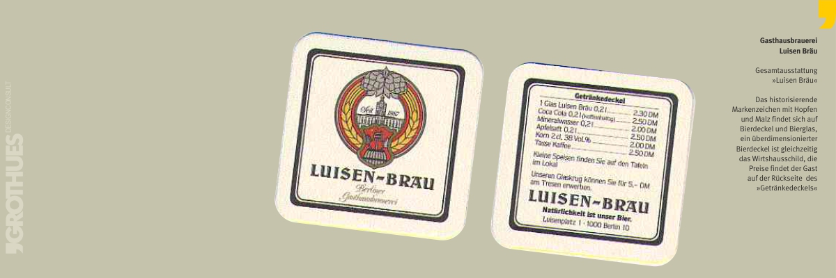 Die Gasthausbrauerei braut Bier und kommuniziert diese seine Marke auf den Biergläsern, den Bierdeckeln und in der Außenwerbung.