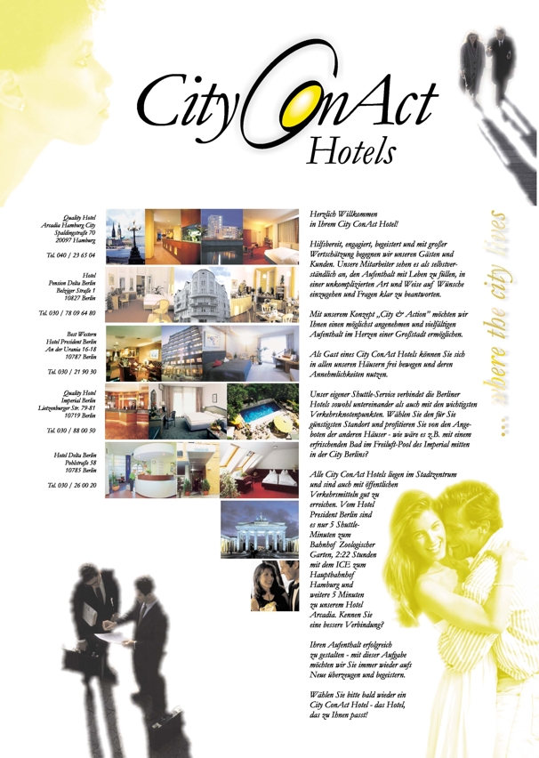 Die CityConAct Hotels stellen Ihre Firmenphilosophie und die Häuser Ihrer Kette auf einem Innenplakat dar.