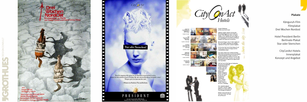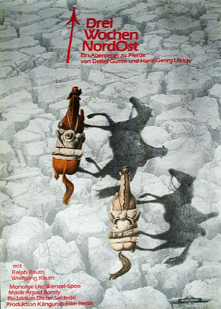Das Filmplakat Drei Wochen Nordost wurde mit geringstem Budget (1 Foto, 1 Zeichnung, zweifarbiger Druck) realisiert.